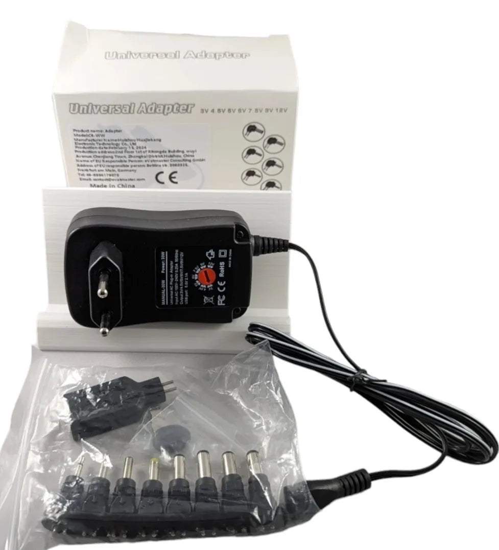 Universal AC➡️DC adapter (supplied) with: